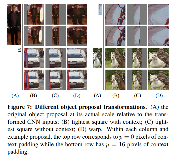 위 그림에서의 (A)는 원본 Region Proposal, (B)는 변형된 Region Proposal, (C)는 $p$ 만큼 인접한 Context가 확장되지 않은 변형된 Region Proposal 이다. (B), (C)의 차이를 통해 $p$ 만큼 Context를 확장하는 방법을 확인할 수 있다.